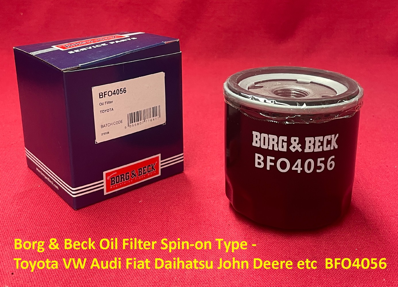Borg & Beck Oil Filter Spin-on Type - Toyota VW Audi Fiat Daihatsu John Deere etc BFO4056