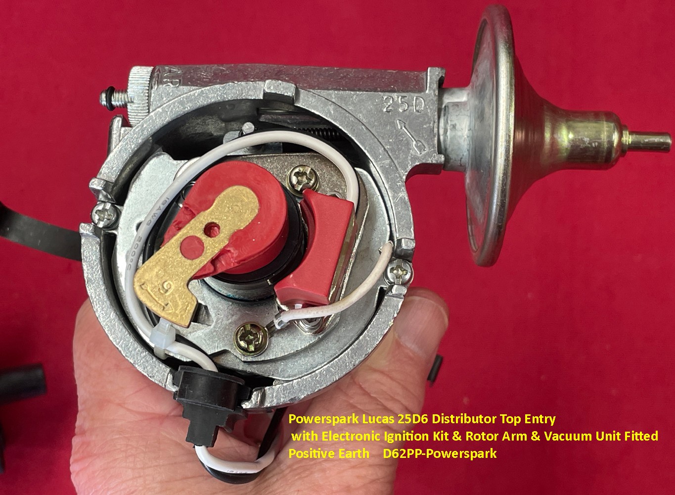 Powerspark Lucas 25D6 Distributor Top Entry with Electronic Ignition Kit & Rotor Arm & Vacuum Unit Fitted - Positive Earth D62PP-Powerspark